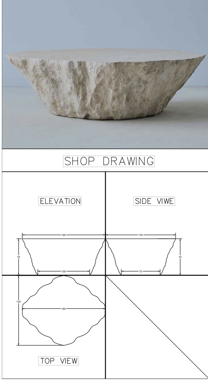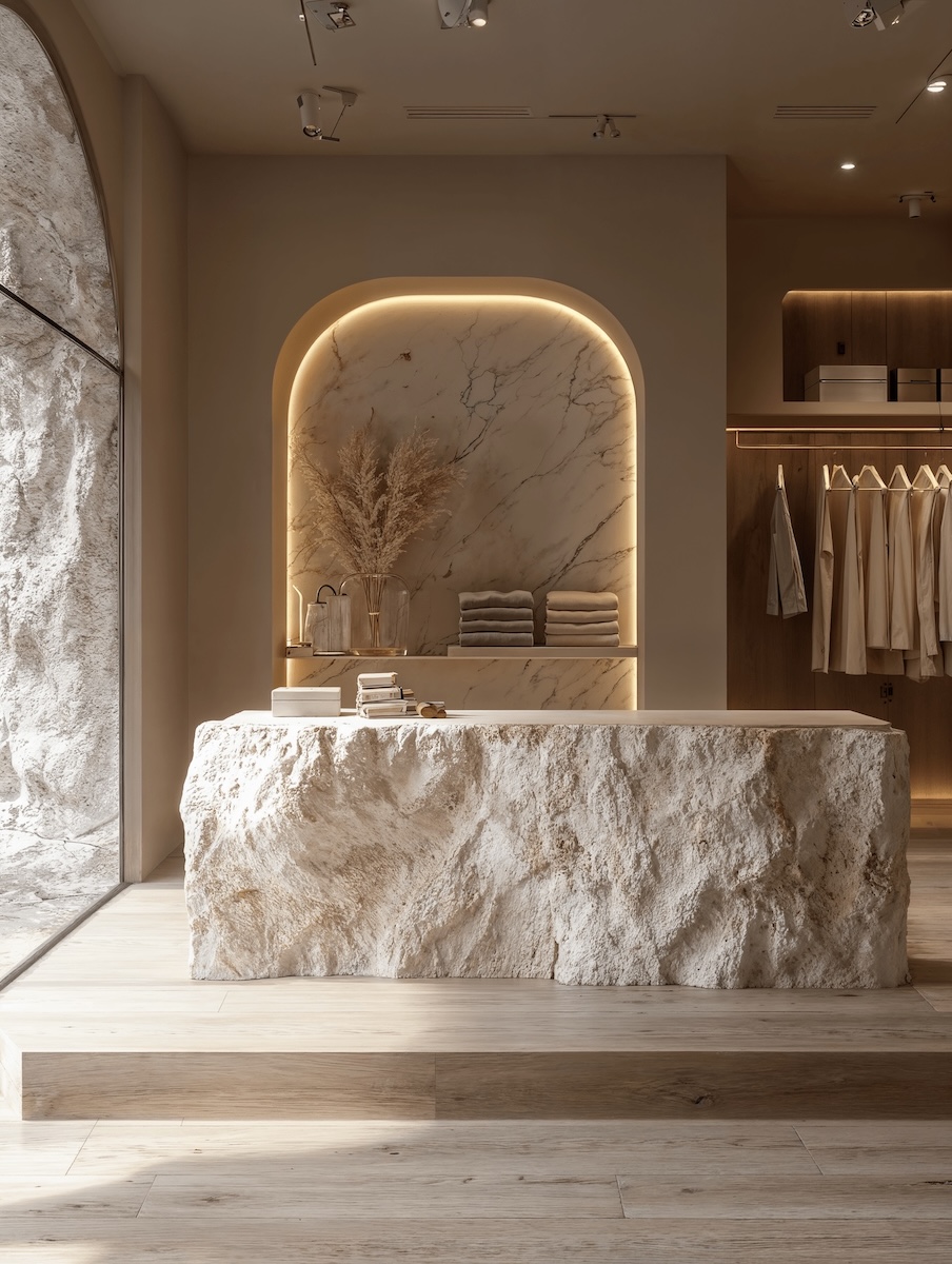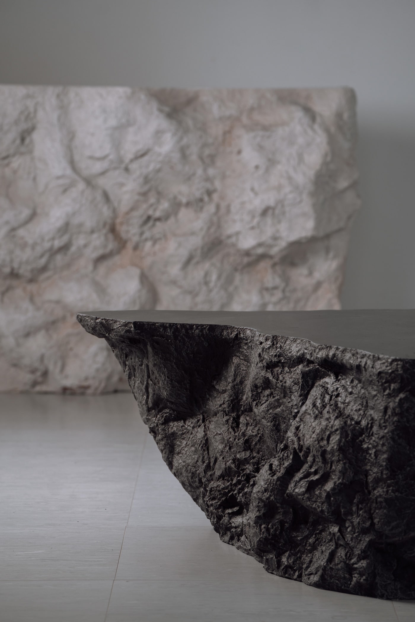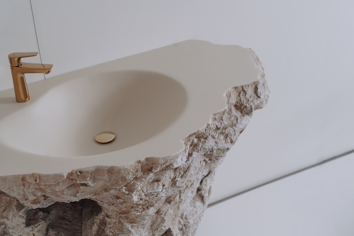 Resembling natural stone, it captivates with its design and beauty, while its textured exterior forms a striking contrast with the smooth, polished interior, offering a unique sense of luxury and perfect comfort.