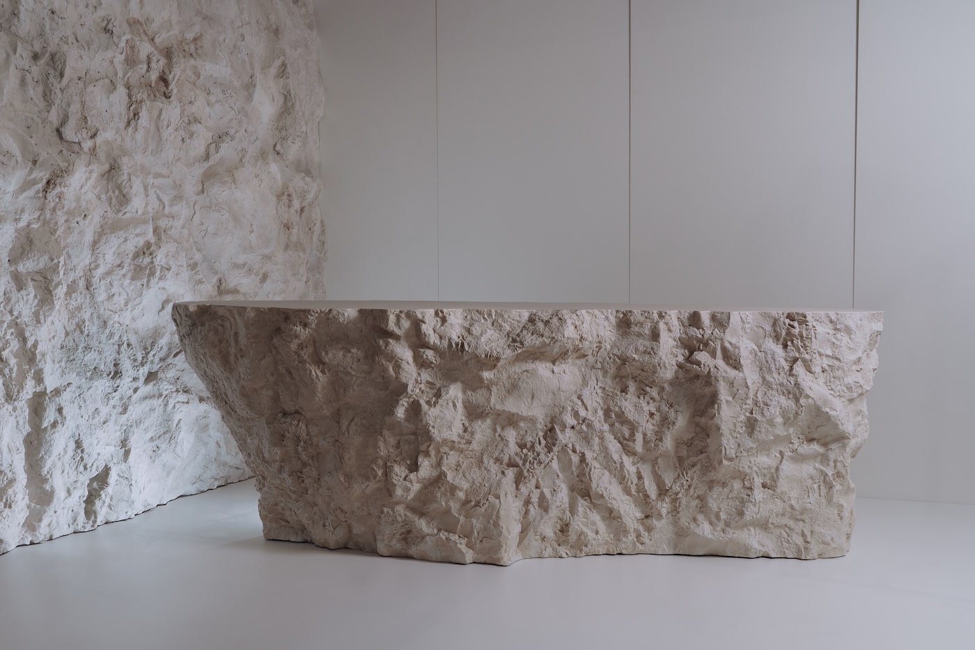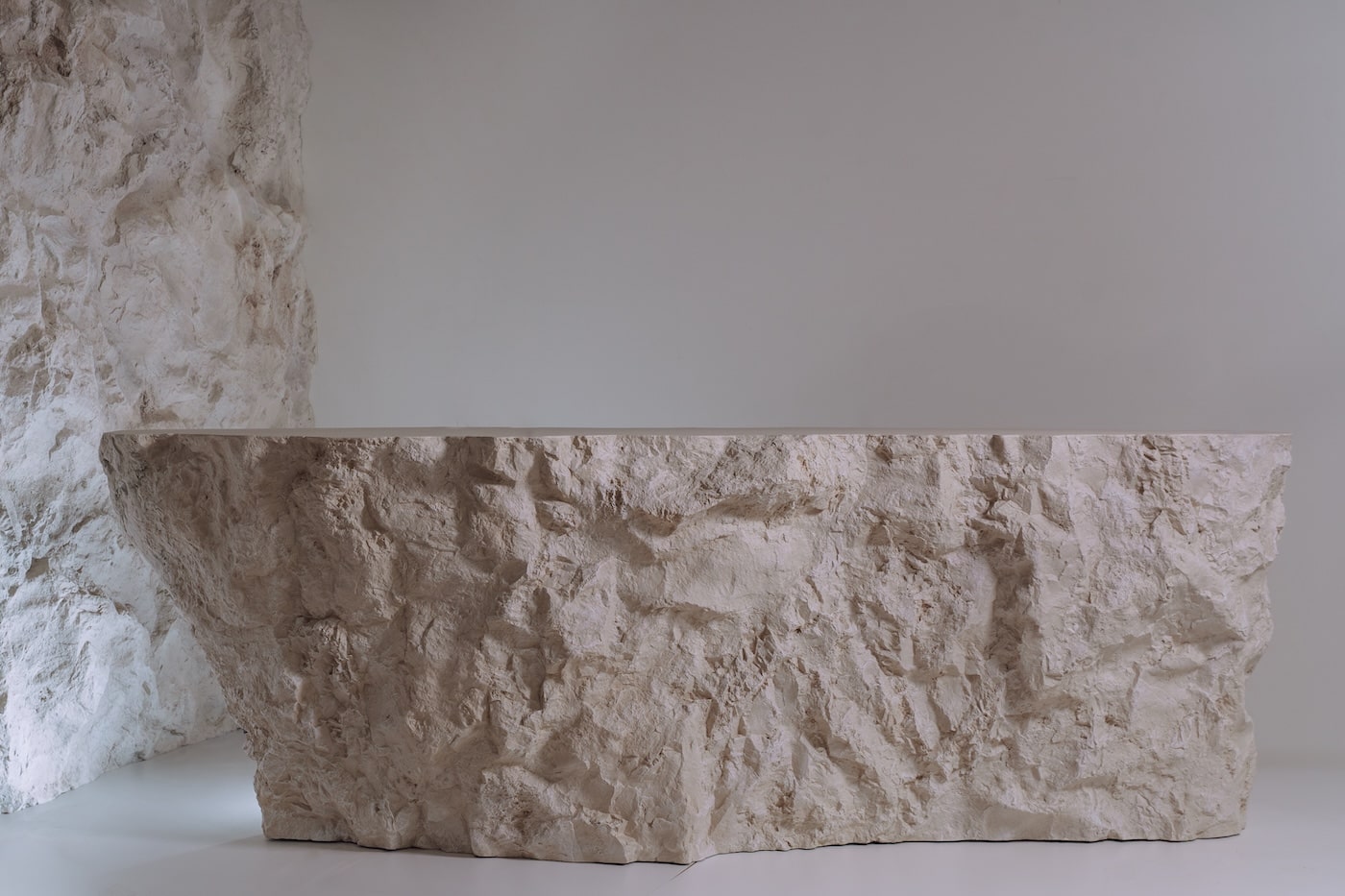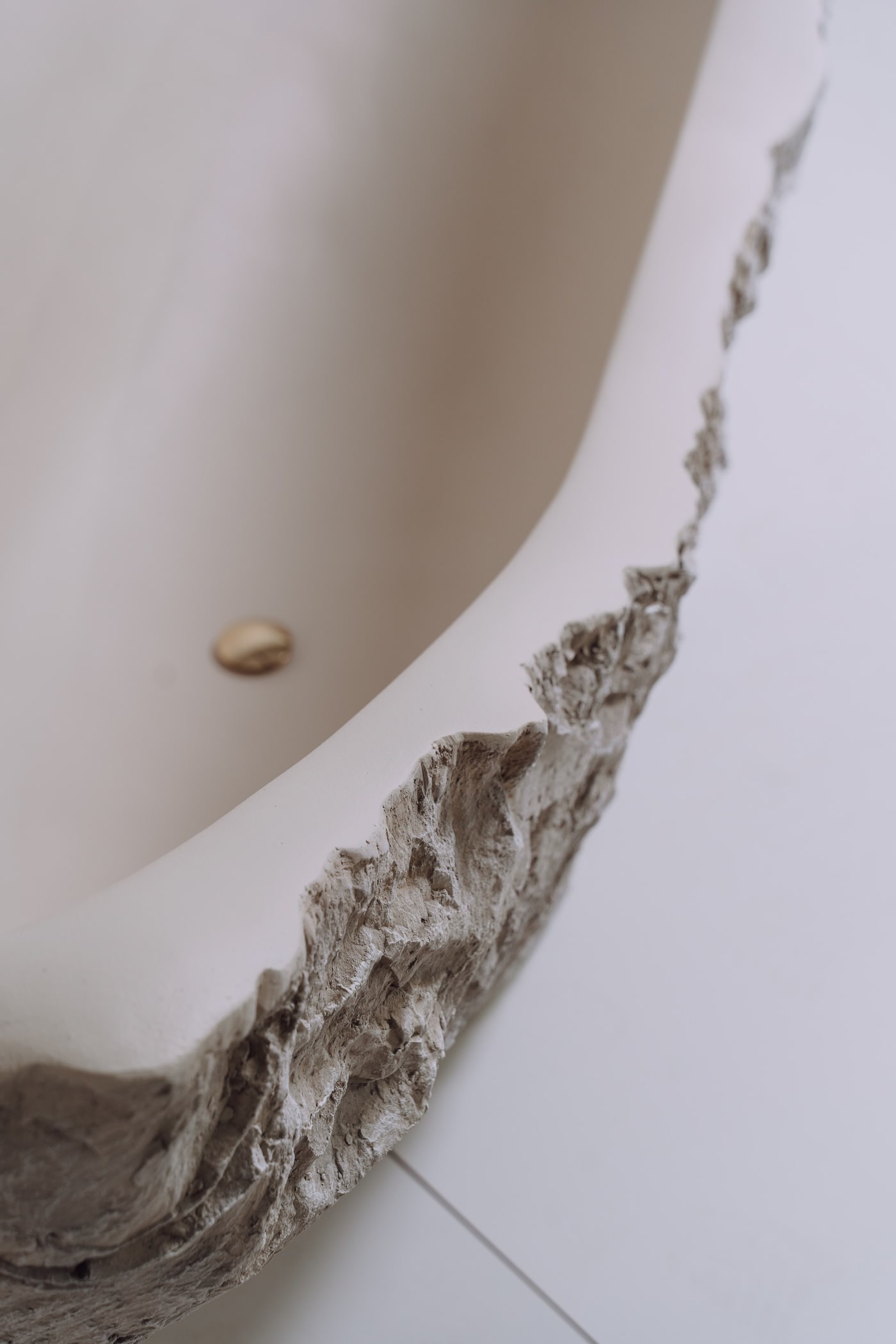The luxurious handcrafted BRAC bathtub perfectly blends raw, organic aesthetics with contemporary design.